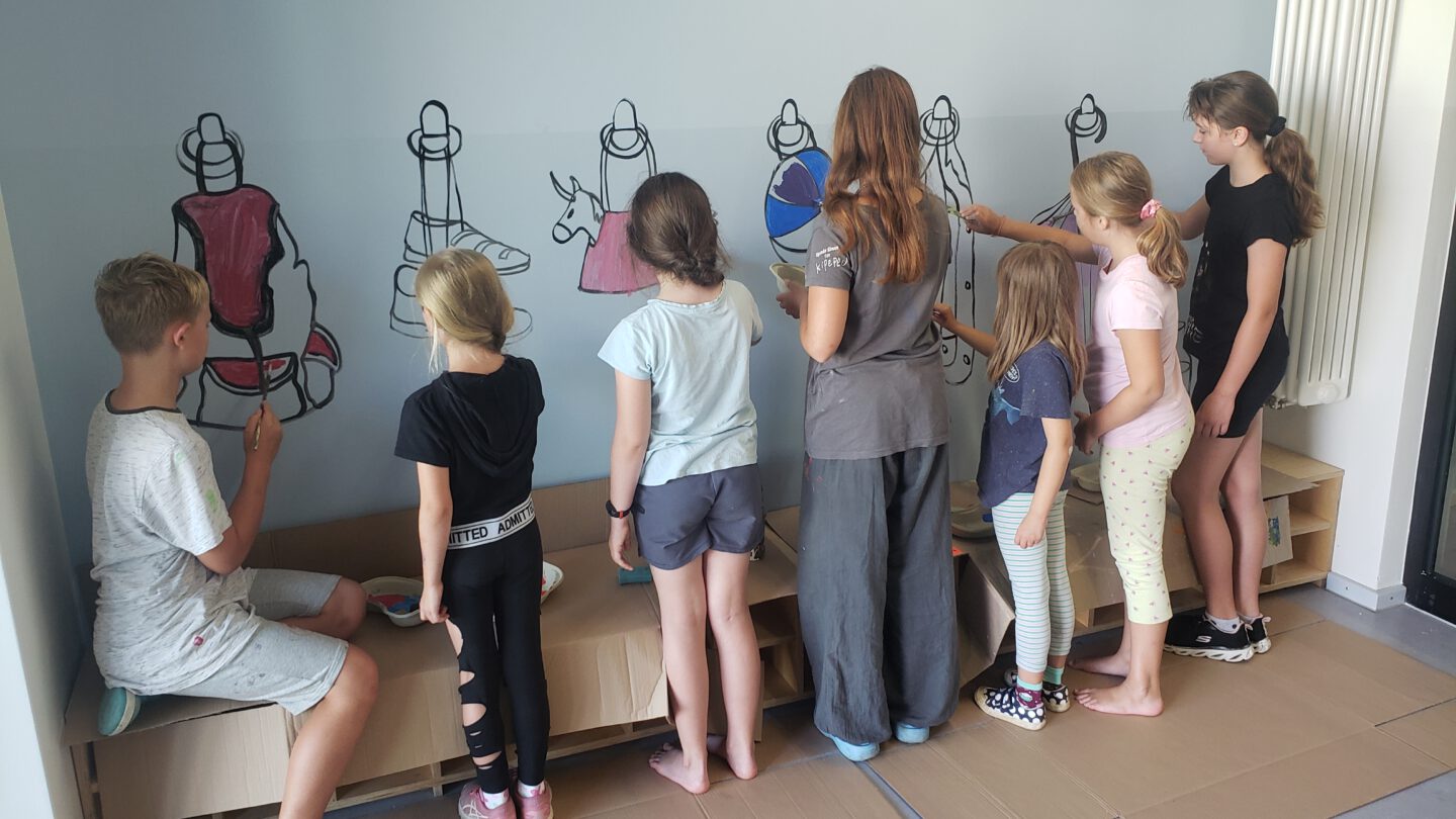 Die neue Turnhalle der Grundschule Am Dorfanger hat in den diesjährigen Sommerferien eine bemerkenswerte Verwandlung durchgemacht, die die Schülerinnen und Schüler, sowie die Lehrkräfte gleichermaßen begeistert hat. Zwei Projektwochen lang stand die neue Turnhalle der Schule im Mittelpunkt eines fesselnden Kunstprojekts, das von der Künstlerin Beate Ritter aus Neuenhagen geleitet wurde.