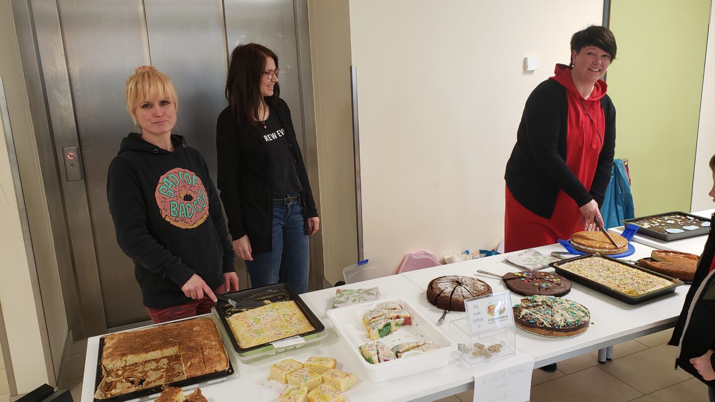 Der Start zu unseren Aktionen in diesem Jahr machte der Kuchenbasar am 08.03. zum Finale der Projektwoche der Kinder an der Grundschule. Der Andrang und die Begeisterung für den selbst gemachten Kuchen war riesig. Einen sehr großen Dank an all die vielen Eltern, die uns den Kuchen für diesen Nachmittag gespendet haben.
